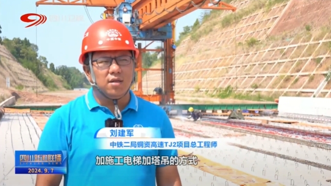 中鐵二局銅資高速TJ2項(xiàng)目總工程師 劉建軍:我們主要通過采用液壓爬模加施工電梯加塔吊的方式,有效控制了安全風(fēng)險(xiǎn),保證了施工質(zhì)量。
