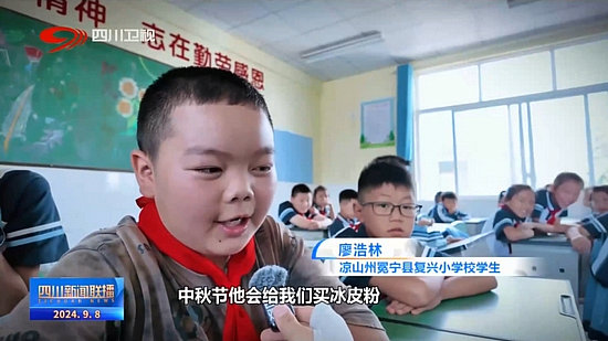 涼山州冕寧縣復(fù)興小學(xué)校學(xué)生 廖浩林:中秋節(jié)他會給我們買冰皮粉,讓我們做月餅,端午節(jié)會讓我們包粽子。