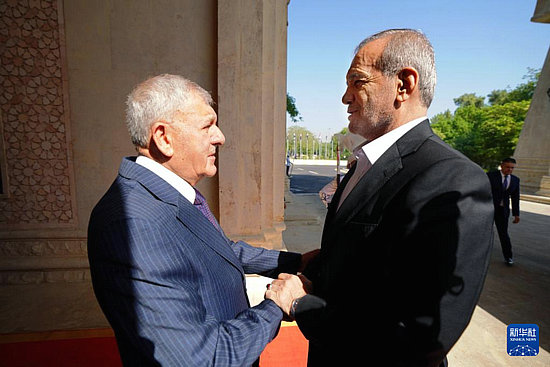 9月11日,伊拉克總統(tǒng)拉希德(右)在首都巴格達(dá)同到訪的伊朗總統(tǒng)佩澤希齊揚舉行會談。新華社發(fā)
