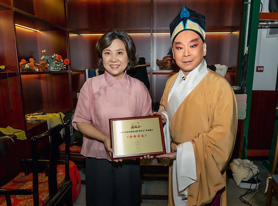 國家京劇院藝術(shù)總監(jiān)袁慧琴向全國小劇場京劇“群英會”演出團體北京風雷京劇團授牌。(國家京劇院供圖)
