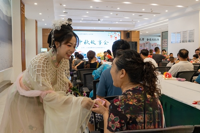 “相傳月亮上有個(gè)廣寒宮,住著美麗的嫦娥,但是今天的中秋故事,要從后羿射日說(shuō)起......”“月餅作為中國(guó)傳統(tǒng)的中秋食品,其起源和演變經(jīng)歷了多個(gè)歷史時(shí)期和文化融合......”在“中秋故事匯”和“嫦娥月餅”環(huán)節(jié),志愿者們生動(dòng)地和大家分享了與中秋相關(guān)的經(jīng)典故事,引領(lǐng)大家沉浸在古老傳說(shuō)的迷人魅力之中,讓參與者們更加深入地了解了傳統(tǒng)中秋節(jié)豐富的文化寓意。