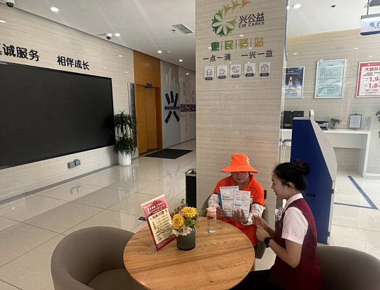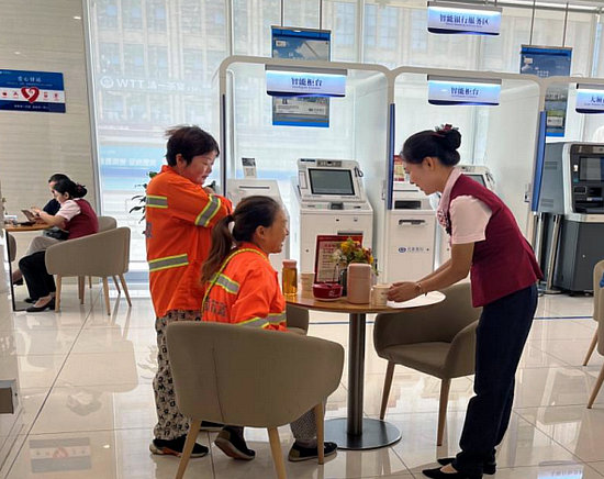 在分行營(yíng)業(yè)大廳內(nèi),除了前來(lái)辦理業(yè)務(wù)的客戶,時(shí)常能看到一些環(huán)衛(wèi)工人、快遞員等戶外勞動(dòng)者在“興公益”惠民驛站休息。該惠民驛站不僅為戶外勞動(dòng)者提供了舒適的休息環(huán)境,還準(zhǔn)備了防暑降溫物品,如解暑涼茶、藿香正氣水、風(fēng)油精等。“以前只能在路邊樹蔭下坐著,興業(yè)銀行這里不僅環(huán)境好,還能補(bǔ)水消暑,中午休息一會(huì)兒,整個(gè)人都有精神了。”在“興公益”惠民驛站休息的環(huán)衛(wèi)工李阿姨說(shuō)。