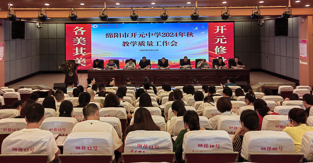 9月11日下午,綿陽(yáng)市開元中學(xué)在學(xué)校和美樓六樓學(xué)術(shù)廳召開了以“共謀發(fā)展,再啟新程”為主題的2024年秋季學(xué)期教學(xué)質(zhì)量工作會(huì)議。各年級(jí)(部)負(fù)責(zé)人及各學(xué)科質(zhì)量組長(zhǎng)參會(huì),黨委書記王力,黨委副書記、校長(zhǎng)敬正雄等學(xué)校領(lǐng)導(dǎo)與會(huì)。會(huì)議由教科室副主任陽(yáng)林鳳主持。