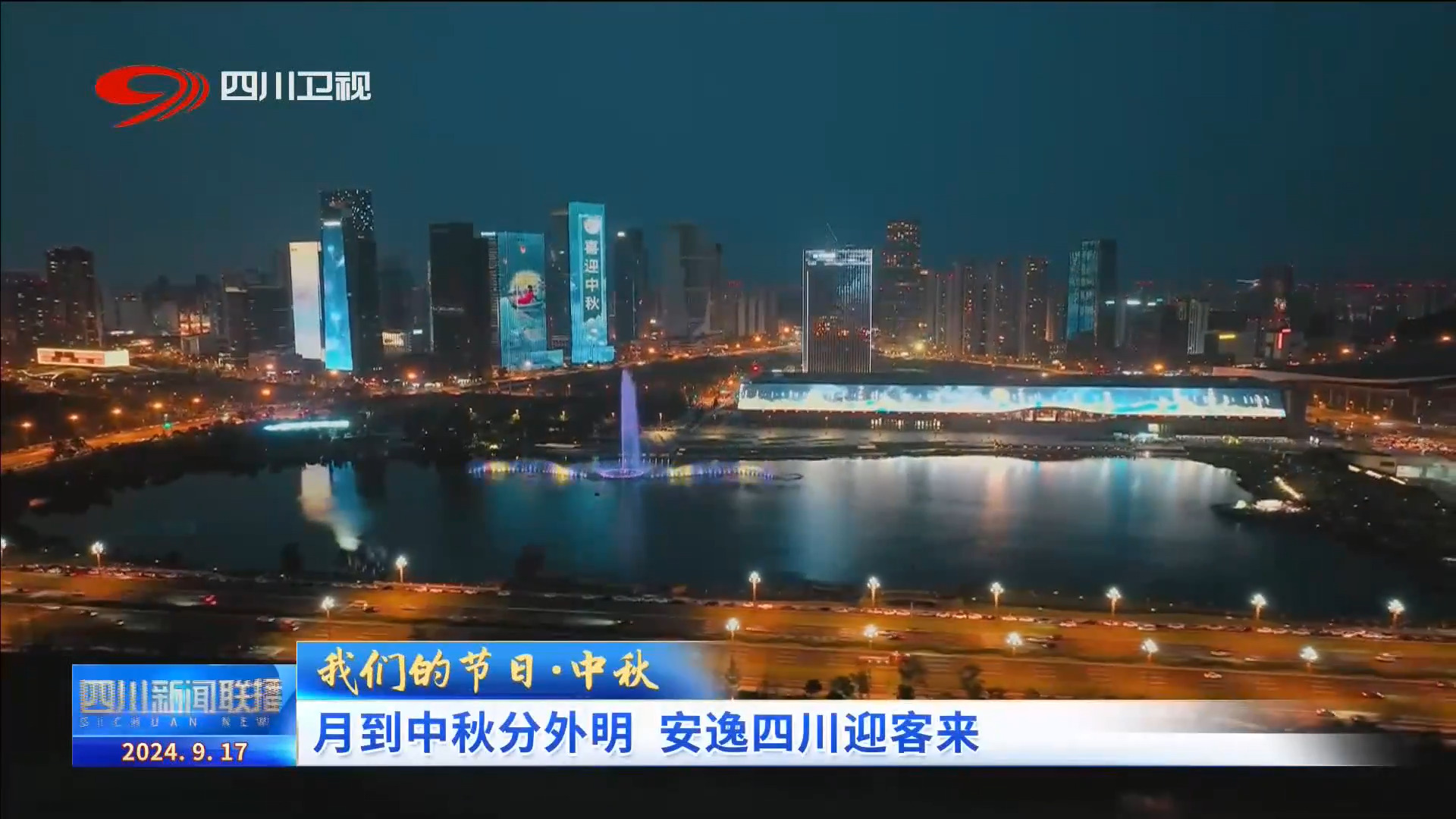 游客 尚倫斌:趁著假期過來走了一下,發(fā)現(xiàn)這個(gè)天府之檐格外漂亮,大屏幕上滾動(dòng)著關(guān)于中秋節(jié)的一些詩句畫面,感覺很震撼,祝大家中秋快樂。