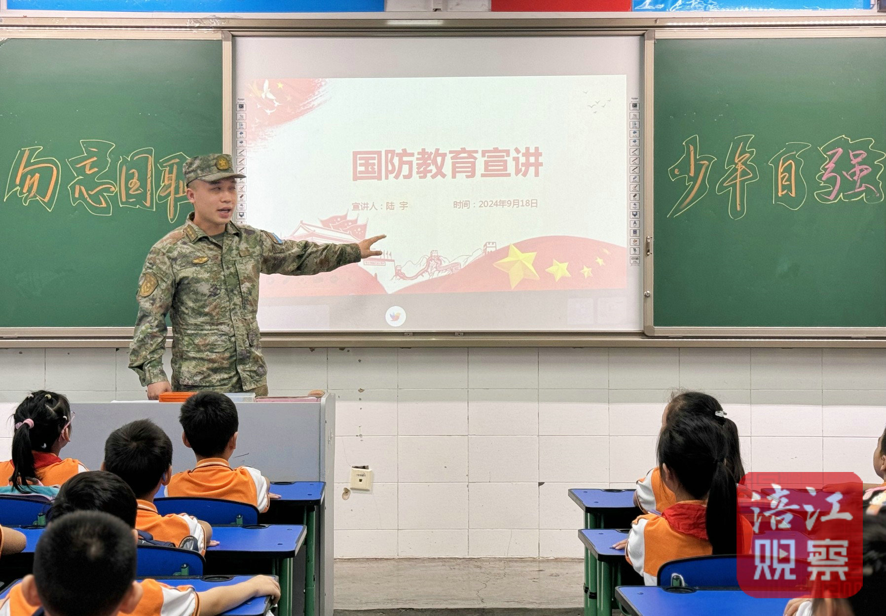 在綿陽實驗小學(xué),學(xué)校開展國旗下講話“勿忘國恥,少年自強”教育活動,邀請解放軍叔叔為孩子們進行國防教育,講述國防建設(shè)的重要意義以及人民軍隊在保家衛(wèi)國中的英勇事跡。