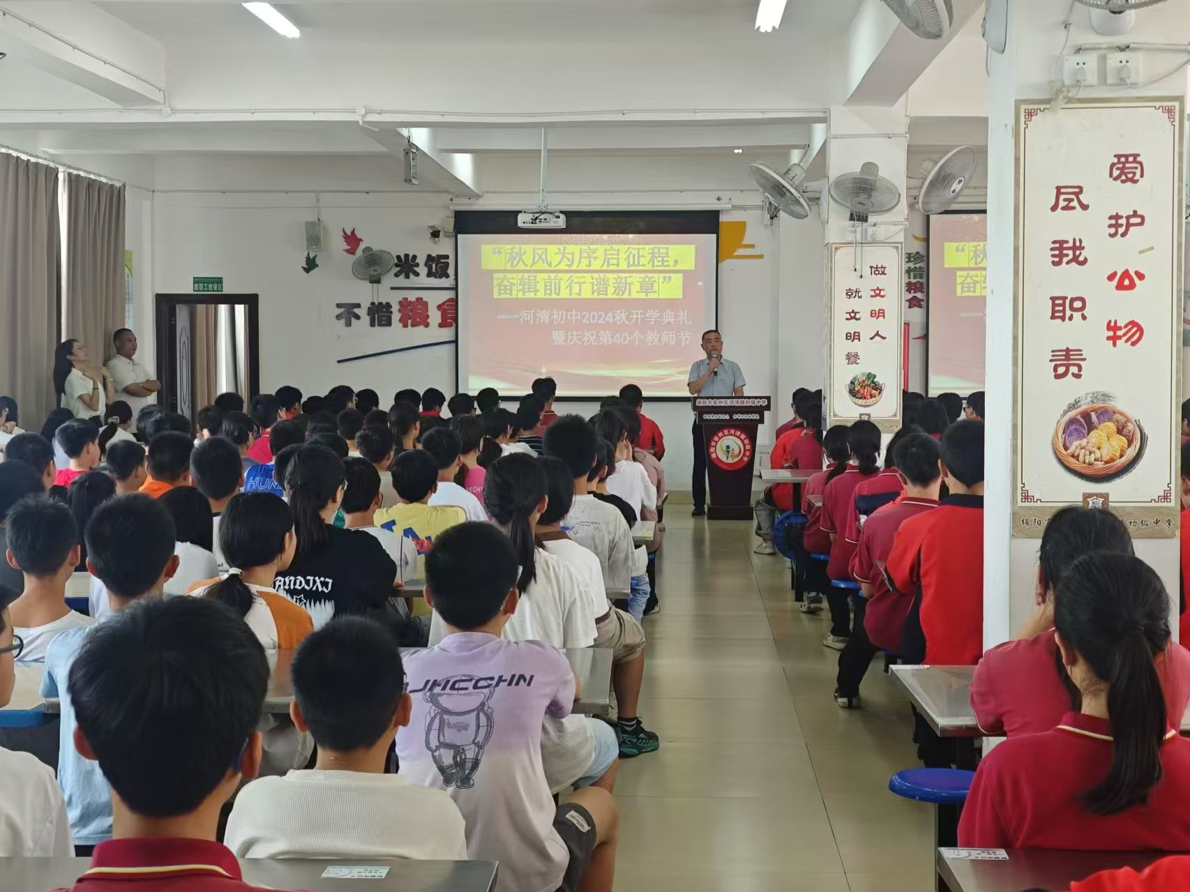 9月10日上午,安州區(qū)河清初中隆重舉行了以“秋風(fēng)為序啟征程,奮楫前行譜新章”為主題的2024年秋開學(xué)典禮暨慶祝第40個(gè)教師節(jié)活動(dòng)。全校260余名師生參與了開學(xué)典禮,活動(dòng)旨在營造濃厚的開學(xué)氛圍,激勵(lì)全校師生以飽滿的熱情和昂揚(yáng)的斗志投入到新學(xué)期的學(xué)習(xí)與工作中。