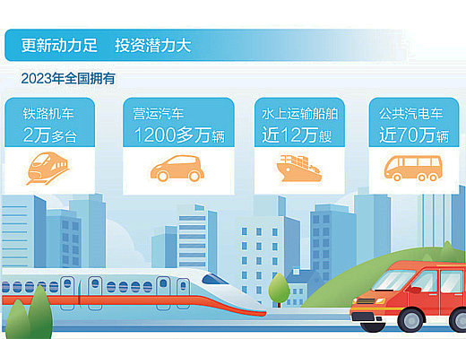 同城市公交車一樣,鐵路機車、汽車、船舶等都有部分設(shè)備需要更新。交通運輸大規(guī)模設(shè)備更新,既能有力促消費,又能有效擴投資,將推動行業(yè)本身及上下游產(chǎn)業(yè)高質(zhì)量發(fā)展。