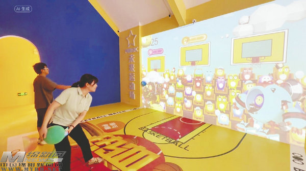 游客在“未來(lái)運(yùn)動(dòng)場(chǎng)”體驗(yàn)虛擬投籃比賽