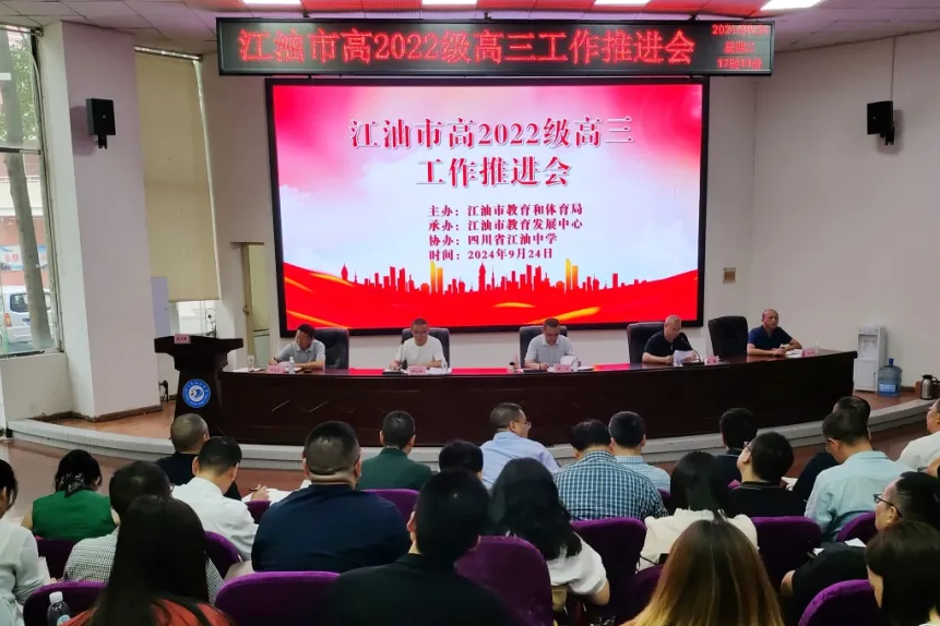 9月24日下午,江油市高三工作推進(jìn)會(huì)在江油中學(xué)召開。參會(huì)人員有江油市教體局主要領(lǐng)導(dǎo)、高中教育、職業(yè)教育分管領(lǐng)導(dǎo),教育一股、職成股股長、分管教學(xué)副股長,全市高(職)中學(xué)校書記、校長,高三分管領(lǐng)導(dǎo)、年級(jí)主任,備課組長、班主任代表及市教育發(fā)展中心負(fù)責(zé)人和高中學(xué)科教研員等。江油市教體局教育一股股長鐘以平主持會(huì)議。