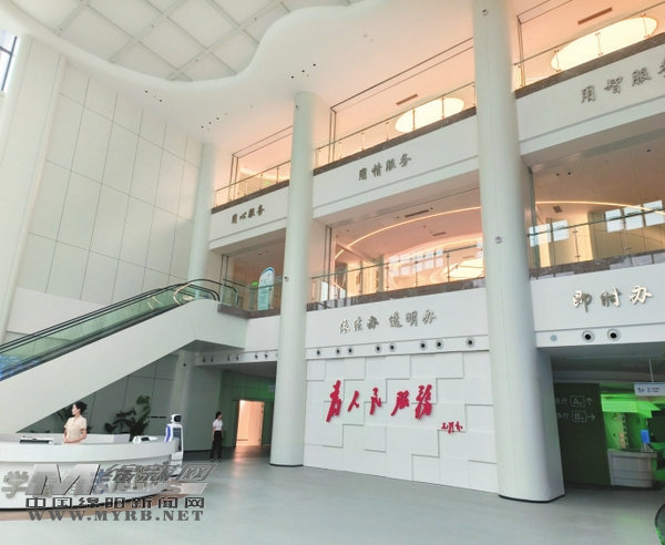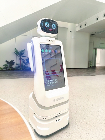 走進(jìn)新政務(wù)服務(wù)中心大廳,迎面而來的除了面帶微笑的前臺工作人員,還有熱情的“導(dǎo)服”機(jī)器人。