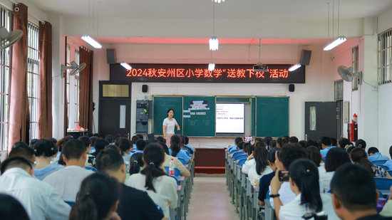 綿陽新聞網(wǎng)訊 為了提升安州區(qū)小學(xué)數(shù)學(xué)課堂教學(xué)整體水平,提高小學(xué)數(shù)學(xué)教師學(xué)科專業(yè)素養(yǎng),促進(jìn)城鄉(xiāng)教育均衡發(fā)展,9月27日上午,安州區(qū)“送教到校助成長(zhǎng),提升素養(yǎng)促均衡”為主題的“2024秋小學(xué)數(shù)學(xué)送教下校”活動(dòng)在秀水鎮(zhèn)第一小學(xué)舉行,本次活動(dòng)由安州區(qū)教研室主辦,安州區(qū)秀水鎮(zhèn)第一小學(xué)承辦。區(qū)教研室主任羅勇、區(qū)數(shù)學(xué)教研員呂涪湘,秀水一小、塔水二小全體數(shù)學(xué)老師,安州區(qū)其他學(xué)校部分?jǐn)?shù)學(xué)老師近百人參加了本次活動(dòng)。