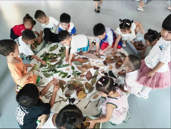 小班組的活動(dòng)更是別具一格。他們以《用祖國(guó)的落葉繪制中國(guó)地圖》為主題,收集起片片落葉,巧妙地繪制成了一幅幅生動(dòng)的中國(guó)地圖。這不僅是一次對(duì)大自然的親近和感悟,更是一次對(duì)祖國(guó)大好河山的深情描繪。在孩子們的巧手下,落葉化作了祖國(guó)的輪廓,也化作了他們心中對(duì)祖國(guó)的無(wú)限熱愛(ài)和向往。