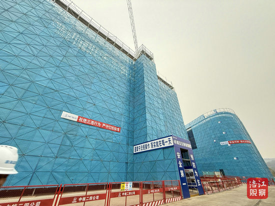 項(xiàng)目建設(shè)現(xiàn)場塔吊林立、機(jī)聲和鳴,工人們正在加緊進(jìn)行水泥澆筑、鋼筋綁扎等工作,現(xiàn)場一派熱火朝天的施工景象。