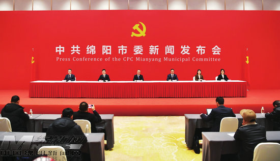 1月1日,中共綿陽市委八屆九次全會(huì)新聞發(fā)布會(huì)現(xiàn)場。(記者 王勇 攝)