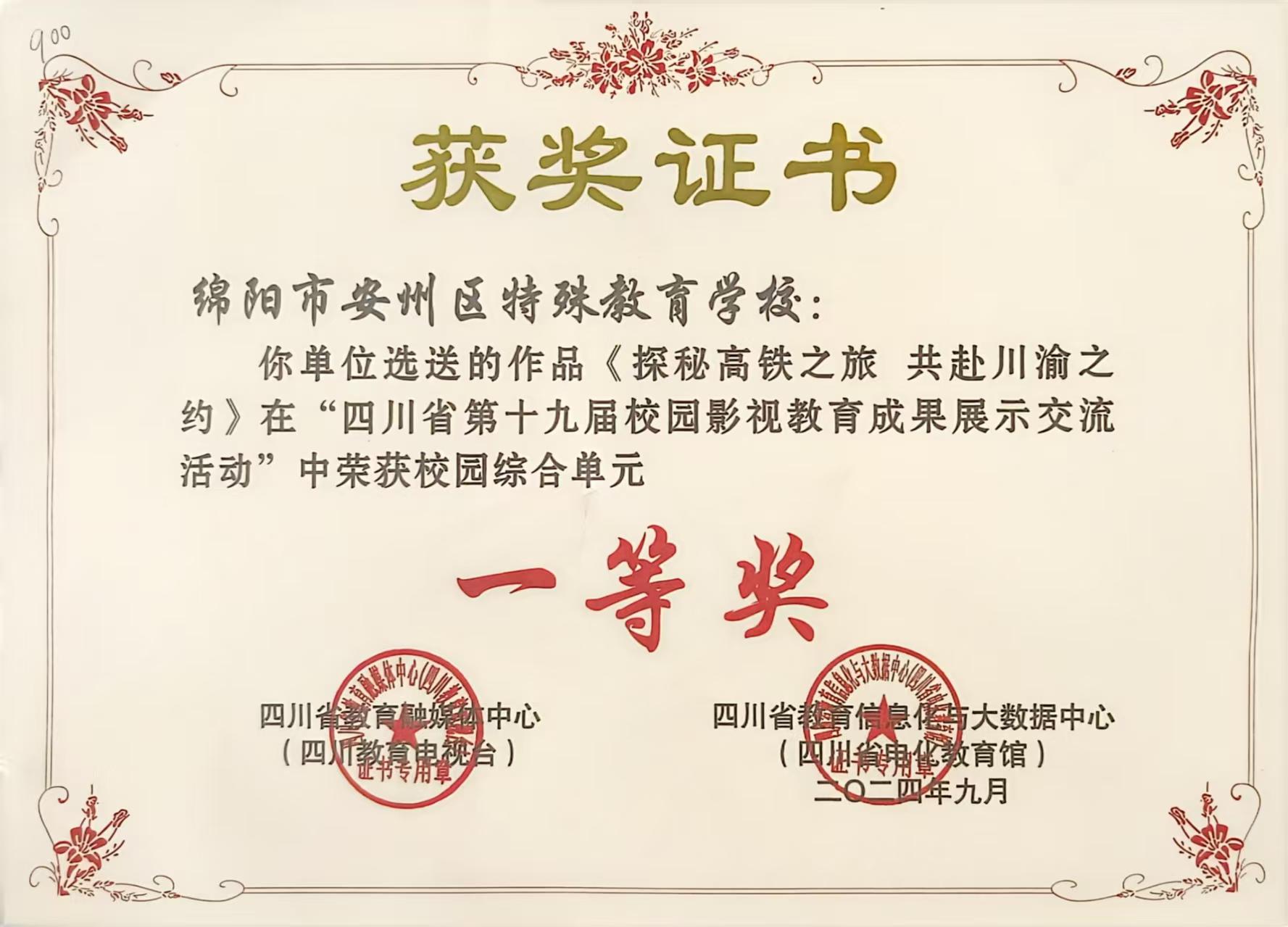 近日,在四川省第十九屆校園影視教育成果展示交流活動中,安州區(qū)特殊教育學(xué)校推送的2024年秋校園影視教育成果作品榮獲兩個一等獎和兩個三等獎。