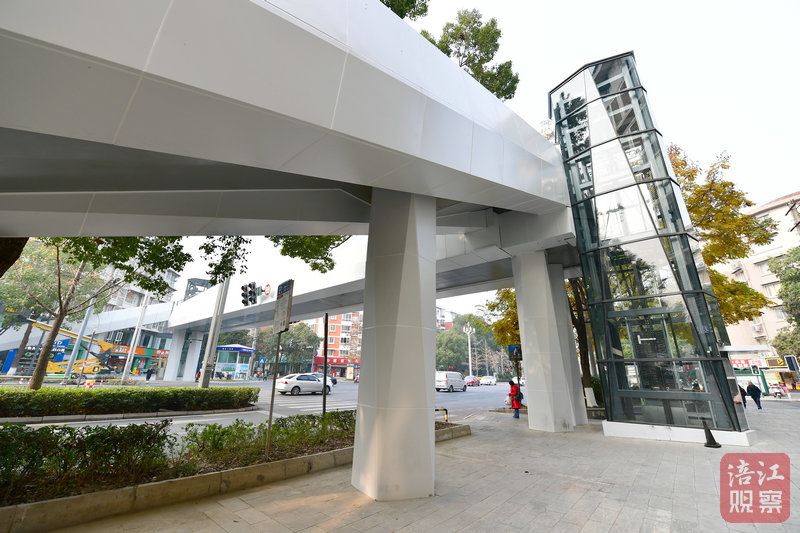 天橋地處沈家壩腹地人口密集,周邊有小區(qū)、機(jī)關(guān)、學(xué)校,兩頭設(shè)有垂直電梯,方便居民過街。