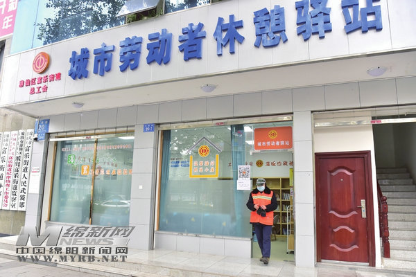 2024年8月24日,央視《新聞聯(lián)播》報道我市已開設(shè)586個工會驛站,為戶外勞動者提供服務(wù)。圖為位于游仙區(qū)東津路的工會驛站?! ?記者 王勇 攝)