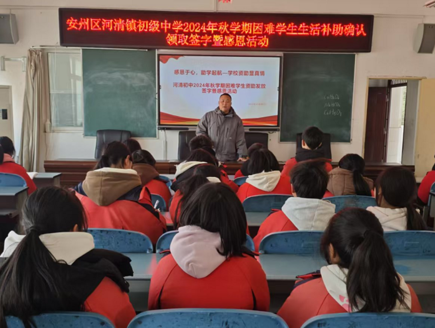 近日,安州區(qū)河清鎮(zhèn)初級(jí)中學(xué)開展了以“感恩于心,助學(xué)起航”為主題的2024年秋學(xué)期困難學(xué)生資助發(fā)放簽字暨感恩活動(dòng),本次活動(dòng)旨在培養(yǎng)青少年形成良好品德和健全人格,讓學(xué)生深刻認(rèn)識(shí)到自己的成長(zhǎng)和成功背后,有許多人為之付出了努力和關(guān)懷。