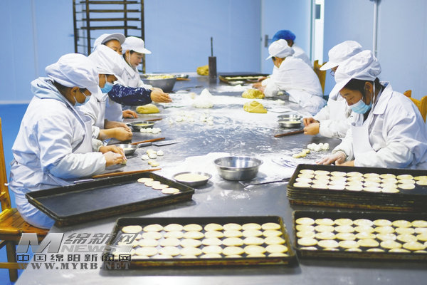 春節(jié)臨近,擁有千年傳承的非遺美食——梓潼酥餅再次成為市場寵兒。1月11日,記者走進位于園區(qū)內的綿陽福匯鄉(xiāng)味食品有限責任公司看到,生產車間正開足馬力生產,十余名工人正投入到梓潼酥餅的制作中。