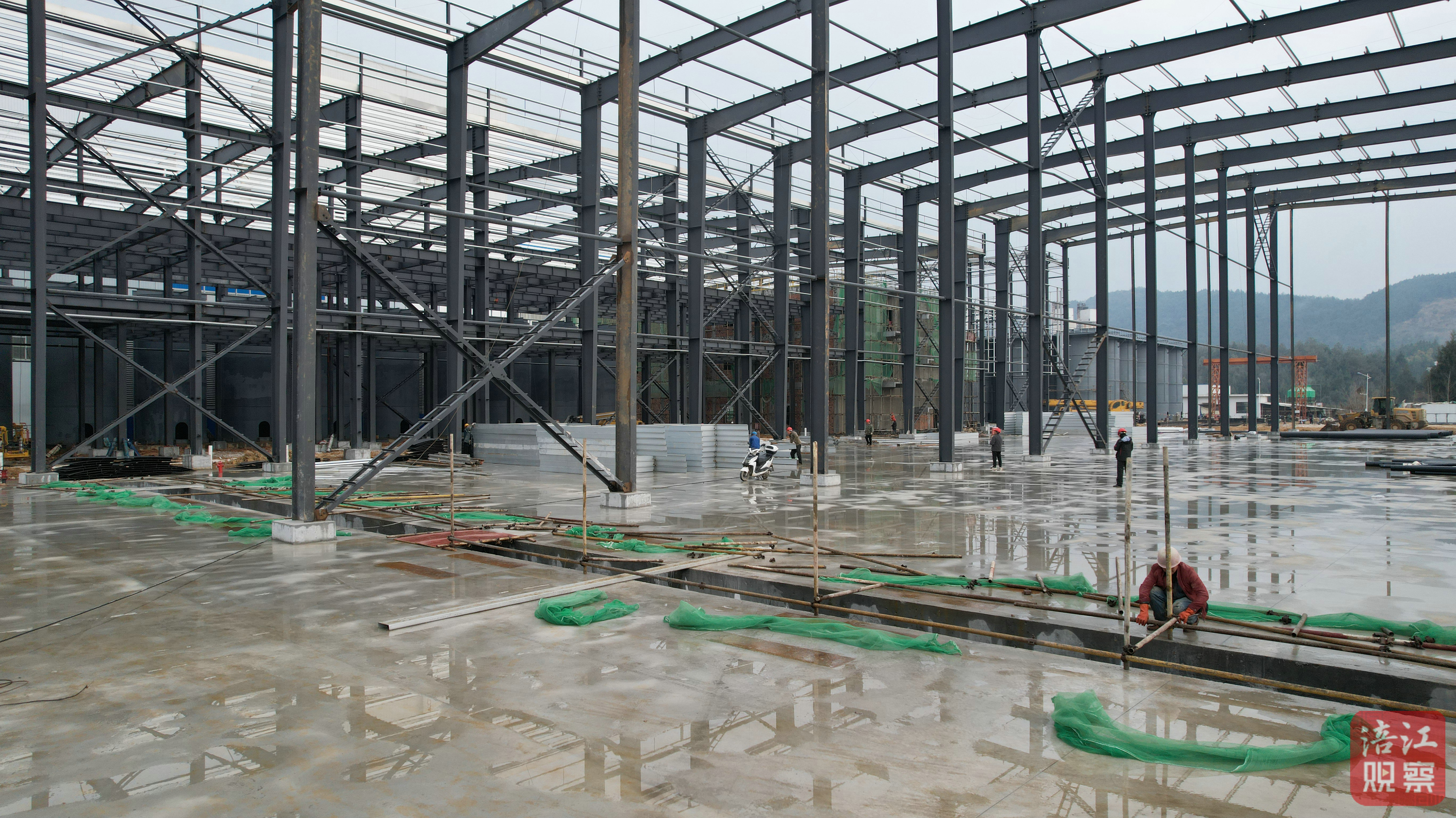 另一邊,與蜀玉實業(yè)一街之隔的四川恒增裝配式建筑科技三期技改項目也即將完成廠房封頂。記者在現(xiàn)場看到,該項目場地道路已經(jīng)完成硬化,122根鋼結(jié)構(gòu)立柱基本完成安裝。