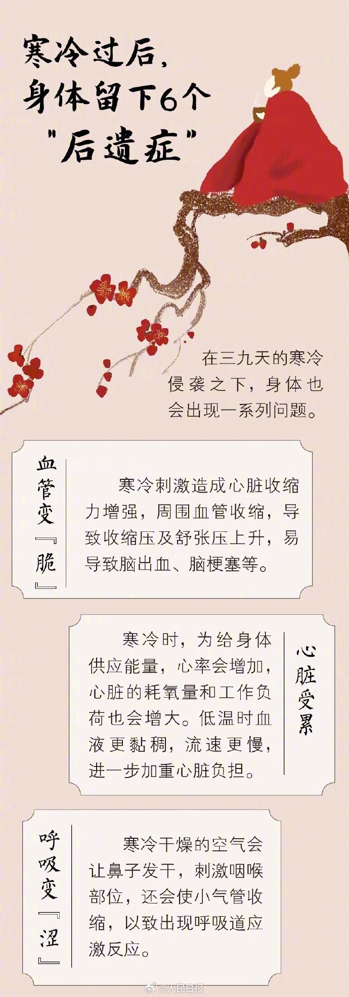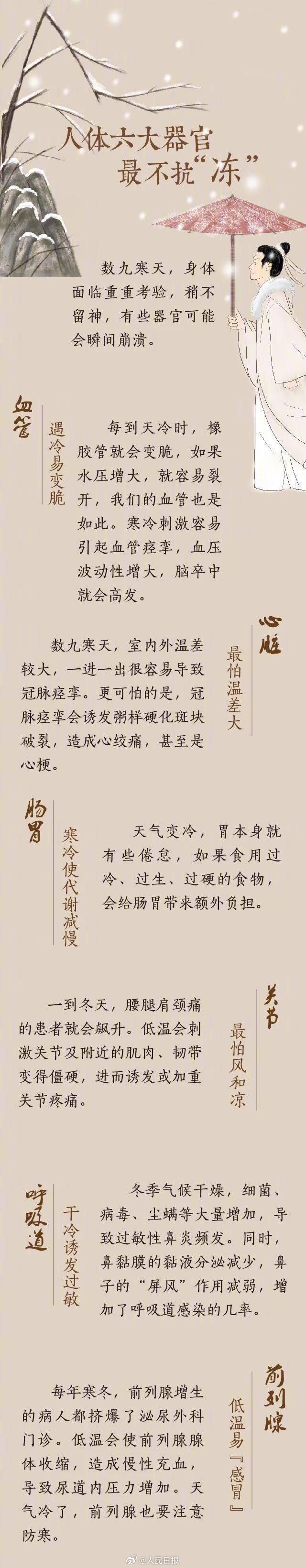 進(jìn)入“三九”后,一年中最冷的時(shí)節(jié)來了。在三九天的寒冷侵襲之下,身體可能會出現(xiàn)一些問題。血管、心臟、腸胃……三九天這6個(gè)器官最不抗凍,如何做好保暖?詳戳↓↓