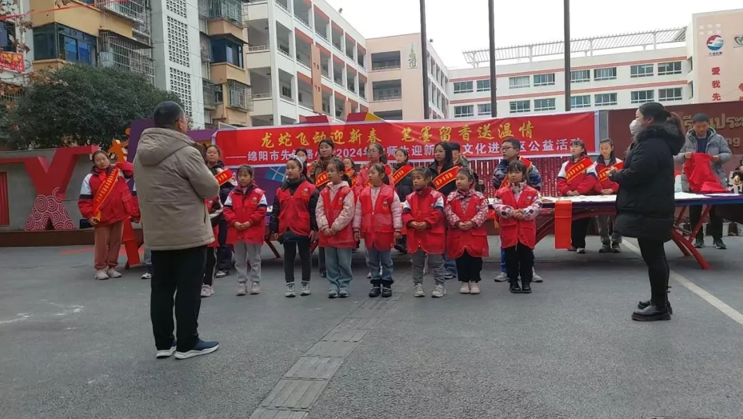 在新春佳節(jié)即將來(lái)臨之際,綿陽(yáng)市先鋒路小學(xué)聯(lián)合轄區(qū)迎賓社區(qū)開(kāi)展了2024年秋迎新春送文化進(jìn)社區(qū)公益活動(dòng),本次活動(dòng)旨在讓學(xué)校素質(zhì)教育與社會(huì)實(shí)踐相結(jié)合,給學(xué)校教師與學(xué)生提供展示平臺(tái),從而推動(dòng)學(xué)校教育面向社會(huì)、服務(wù)社會(huì),進(jìn)一步樹(shù)立先鋒教育品牌形象。