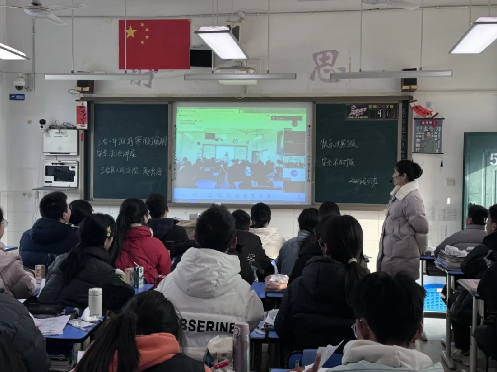 為了進(jìn)一步加強(qiáng)法治安全教育工作,筑牢法治防線,共度平安假期,提高師生法治安全意識(shí)及自我保護(hù)能力,創(chuàng)建和諧、平安校園,2025年1月13日,三臺(tái)縣人民法院法官,三臺(tái)一中法治副校長(zhǎng)趙青海應(yīng)邀走進(jìn)三臺(tái)一中,開(kāi)展了以“筑牢法治防線 共度平安假期”為主題的2024年秋期末校園安全教育法治現(xiàn)場(chǎng)講座,全校師生通過(guò)線上、線下結(jié)合方式實(shí)現(xiàn)全員參與。