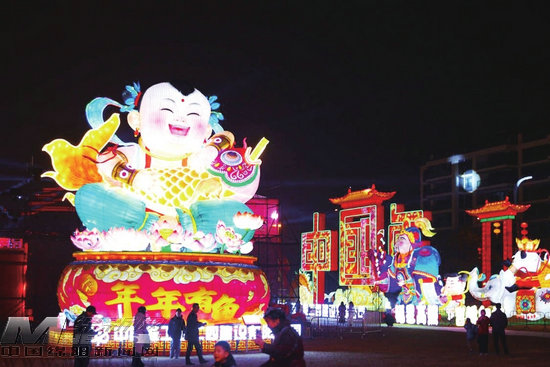 記者在現(xiàn)場看到,最引人注目的要數(shù)“芙蓉仙子”燈組,以芙蓉溪的美麗傳說為創(chuàng)意來源,用擬人化的方式展現(xiàn)出芙蓉溪的美麗,15米高的芙蓉仙子身著粉綠傳統(tǒng)服飾,宛如花中仙子降臨。周圍9個身著不同朝代服飾的小仙子相映成趣,在夜空下璀璨奪目。同時,“芙蓉仙子”也是一個獨(dú)具特色的燈組,用10余萬個藥瓶捆扎組成的巨型藥瓶燈組十分驚艷,不僅環(huán)保,也展現(xiàn)出彩燈藝術(shù)中萬物皆可燈的精湛技藝。