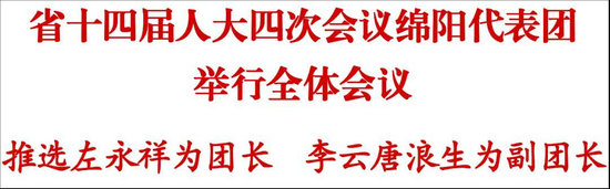 綿陽新聞網(wǎng)訊成都專電 1月19日,省十四屆人大四次會(huì)議綿陽代表團(tuán)在駐地舉行全體會(huì)議,推選副省長、市委書記左永祥為綿陽代表團(tuán)團(tuán)長,市委副書記、市長李云和市人大常委會(huì)主任唐浪生為副團(tuán)長。