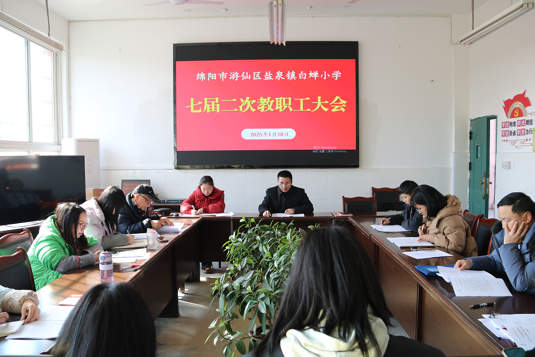 2025年1月18日,游仙區(qū)鹽泉鎮(zhèn)白蟬小學(xué)召開了以“潛心育人齊聚力,篤行不怠啟新程”為主題的第七屆工會委員會第二次教職工大會。本次大會旨在凝聚全體教職工的智慧與力量,保障各方面工作有序開展,推動學(xué)校提質(zhì)增效,助力學(xué)校持續(xù)高質(zhì)量發(fā)展。