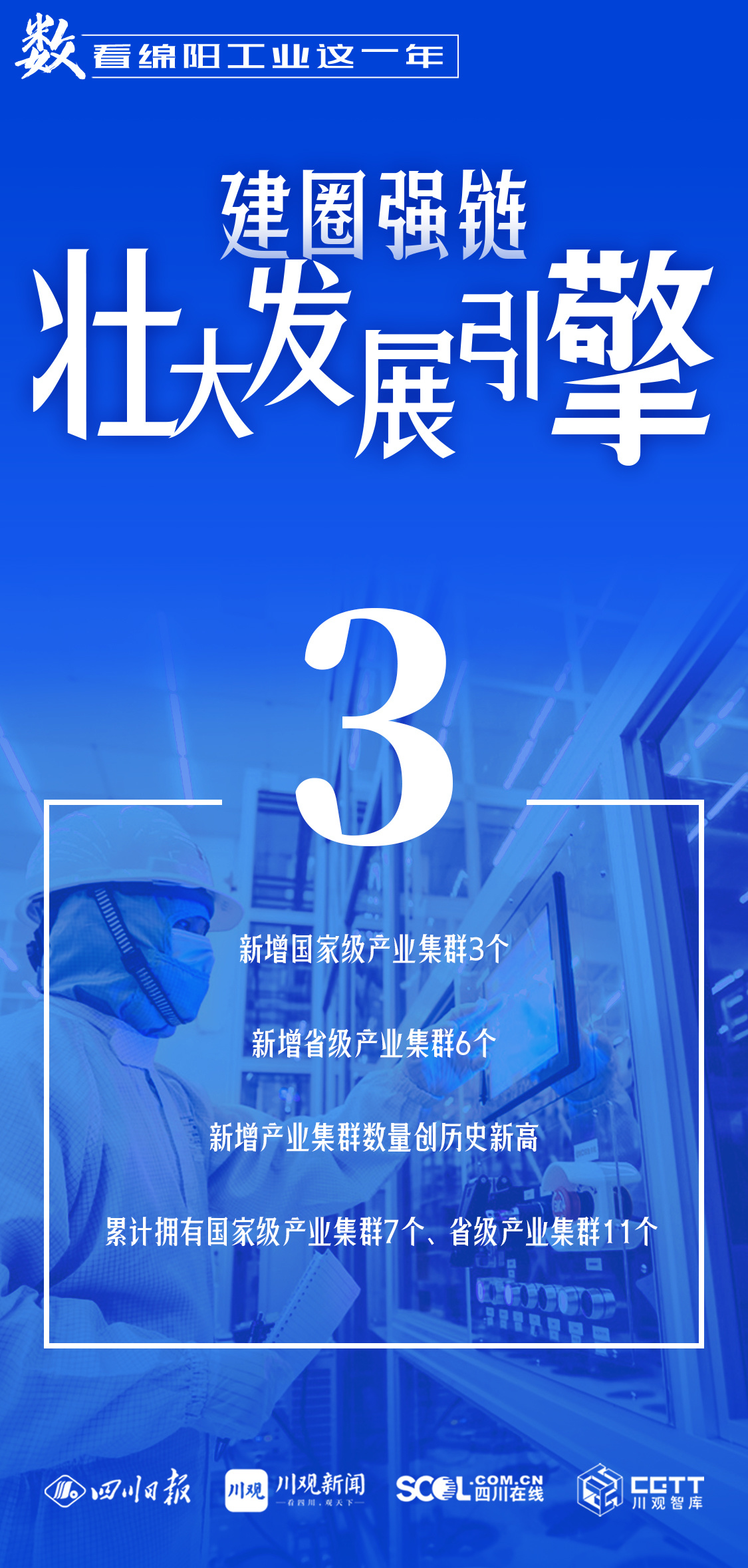 2024年,綿陽新增國家級產(chǎn)業(yè)集群3個(gè),新增省級產(chǎn)業(yè)集群6個(gè),新增產(chǎn)業(yè)集群數(shù)量創(chuàng)歷史新高;綿陽入選全國市級地方政府制造業(yè)數(shù)字化轉(zhuǎn)型典型案例城市、為西部唯一;綿陽位列“2024先進(jìn)制造業(yè)百強(qiáng)市”榜單59位、較上年提升9位,全省進(jìn)位最快……