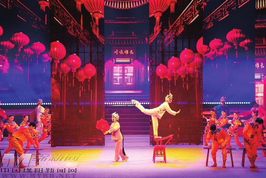 文脈跨越千年,現(xiàn)代藝術(shù)演繹出別樣綿州風(fēng)情。在情景歌舞《吾愛吾家》中,吹落塵封千年的塵土,喚醒東漢說唱俑,講述吳家鎮(zhèn)的“前世今生”;燈光亮起,演員們身著川劇服裝,從歷史的光影中款款而來,演繹戲曲中的《川味綿長》。