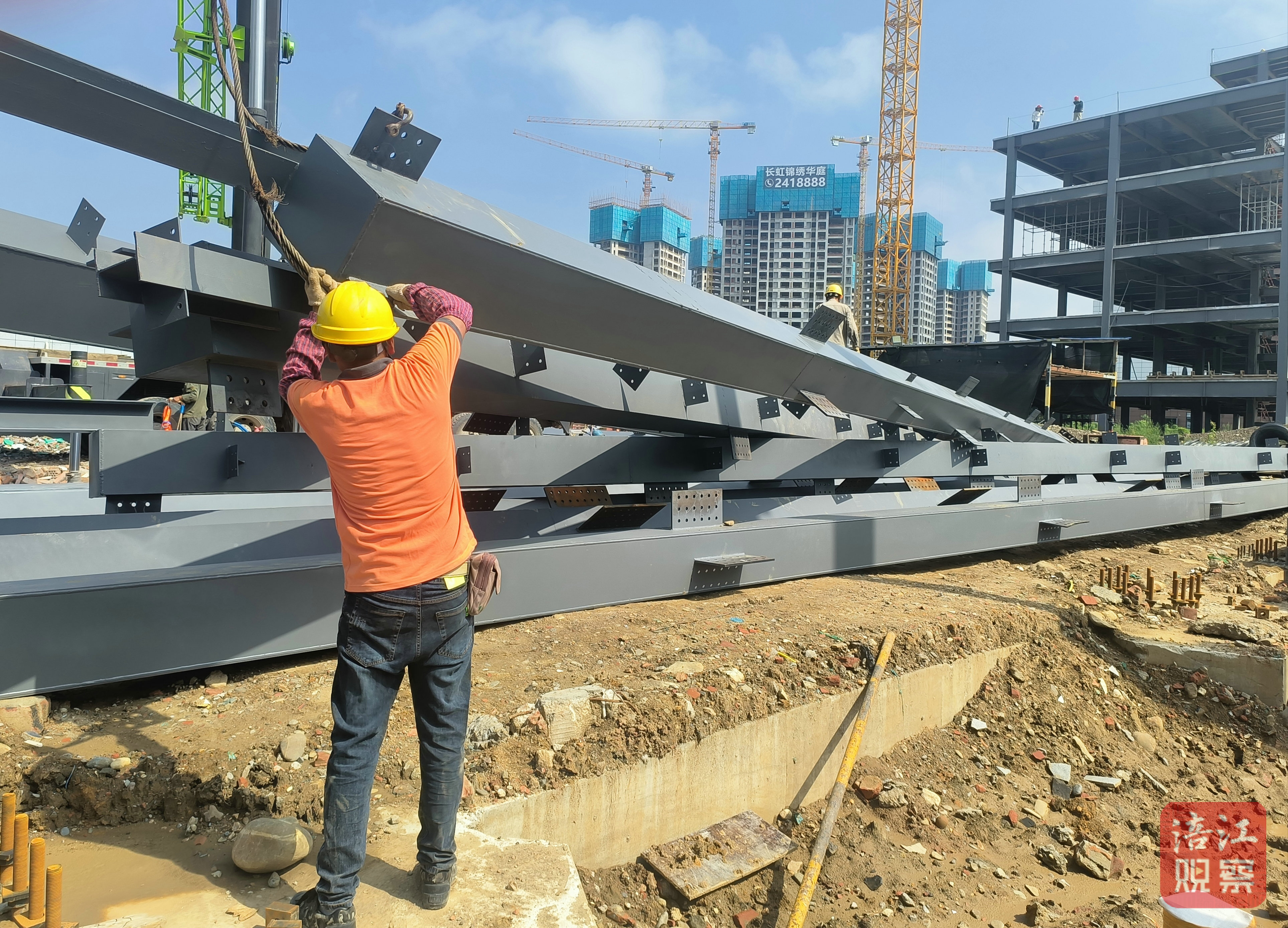 近日,記者在四川綿陽艾薩斯電子材料有限公司新項目建設工地看到,高大的鋼結構骨架拔地而起,吊車巨臂揮舞,工人們正在緊張有序地進行鋼柱與鋼梁的安裝作業(yè),金屬的碰撞聲奏響了產(chǎn)業(yè)奮進的序曲。
