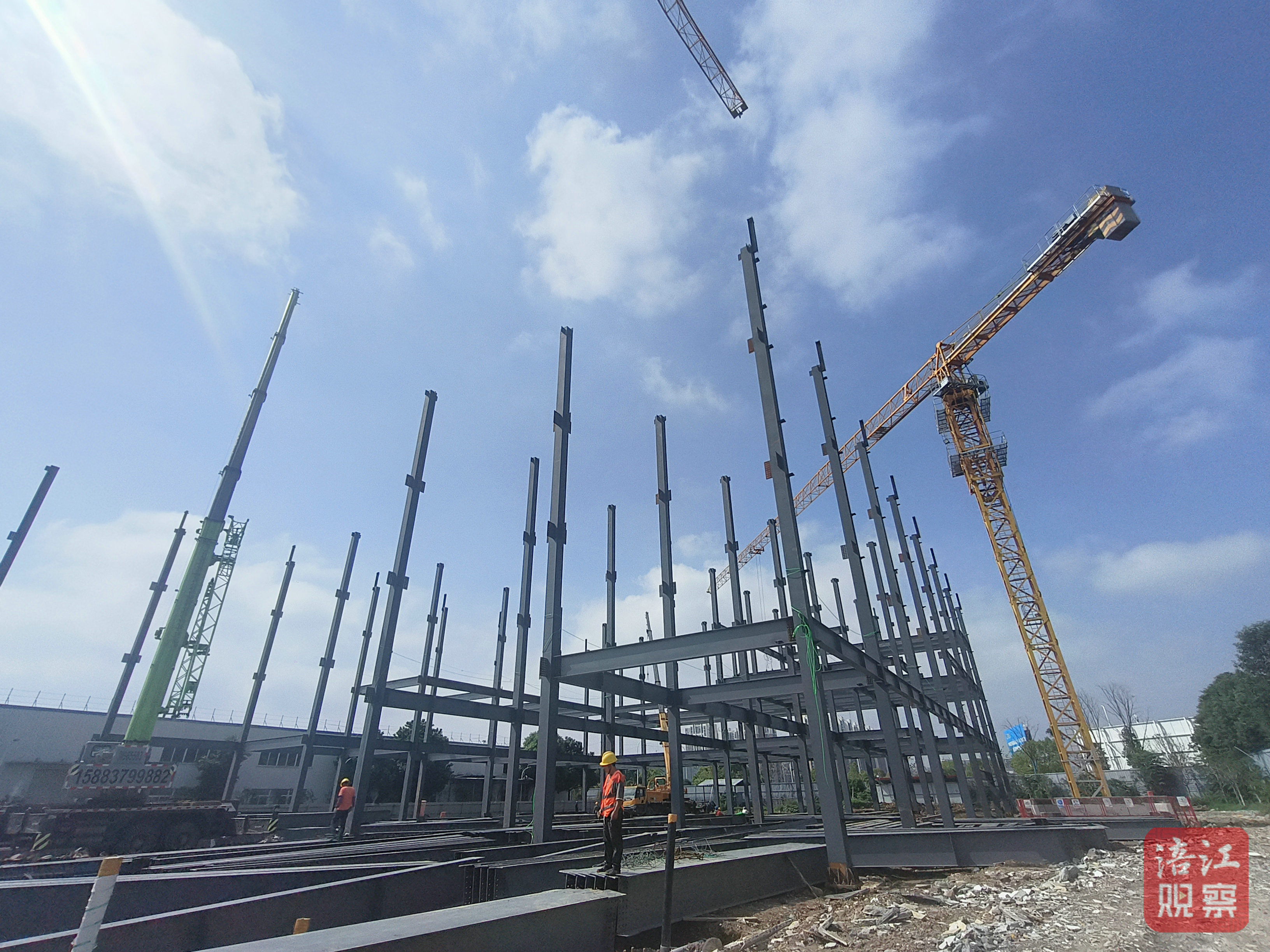 “目前,我們正在進行鋼構的安裝,鋼柱和鋼梁的安裝都在同步推進,鋼梁部分已經(jīng)施工到三四層了。”施工現(xiàn)場負責人廖鋒指著正在“生長”的廠房向記者介紹,“右邊的綜合辦公樓主體樓板已經(jīng)完成,二樓以上準備砌磚,底樓即將打墊層,我們正全力沖刺,確保今年12月底能夠如期完工。”