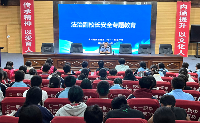 綿陽新聞網(wǎng)訊 為了進一步擰緊學(xué)生 “法治思想弦”、筑牢 “安全防護墻”,營造平安和諧的校園氛圍,9月28日,北川羌族自治縣“七一”職業(yè)中學(xué)在學(xué)術(shù)報告廳開展了以“青春有法,行穩(wěn)致遠”為主題的學(xué)生安全法治專題講座活動。本次講座由永昌派出所所長、該校法治副校長何偉同志主講,部分學(xué)生及班主任代表參加活動。