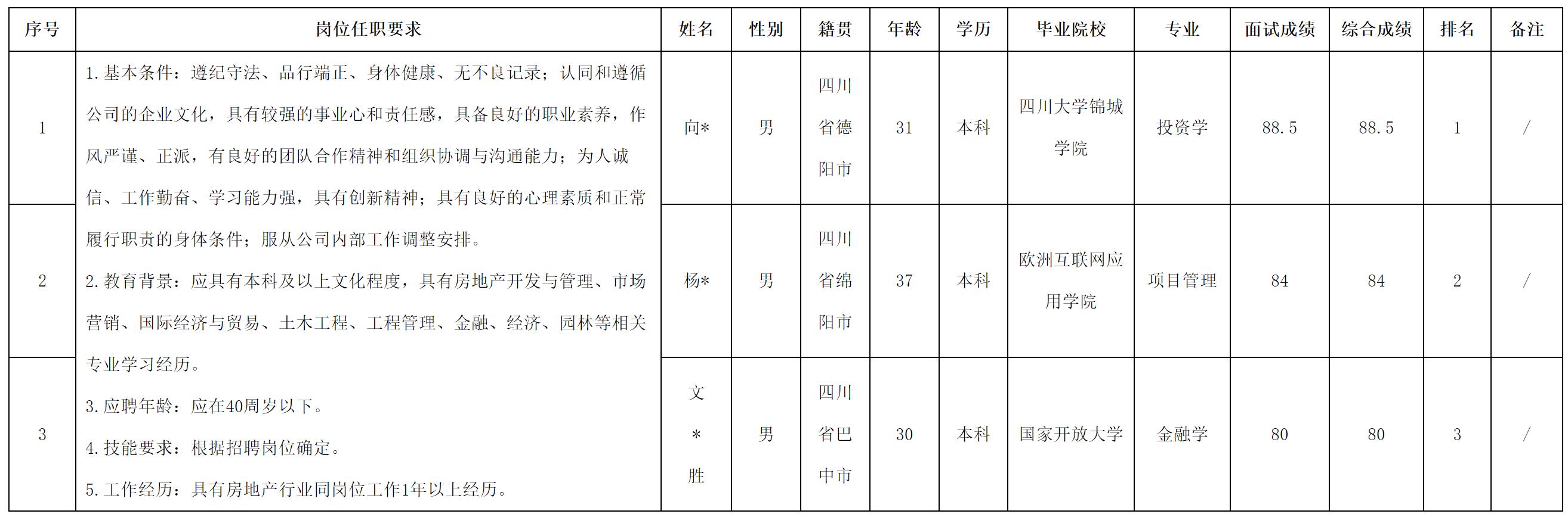 根據(jù)四川波鴻實(shí)業(yè)有限公司發(fā)布的招聘公告及招聘相關(guān)規(guī)定,經(jīng)測試等程序,現(xiàn)將面試成績予以公示。