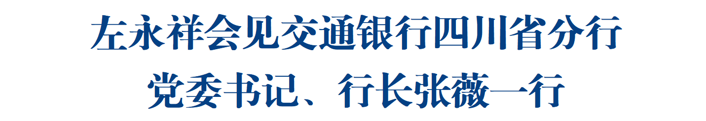 綿陽新聞網(wǎng)訊 10月14日,省委常委、市委書記左永祥會見交通銀行四川省分行黨委書記、行長張薇一行。會見中,雙方圍繞搶抓成渝地區(qū)雙城經(jīng)濟圈建設(shè)等重大機遇,深化銀政合作,以優(yōu)質(zhì)金融服務支持綿陽重大項目建設(shè)和重點產(chǎn)業(yè)發(fā)展,持續(xù)加強在科技金融、惠民就醫(yī)、消費金融、跨境金融等領(lǐng)域的務實合作,助力綿陽加快建成省域經(jīng)濟副中心等交換了意見。
