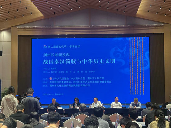 “荊州區(qū)域新發(fā)現(xiàn)戰(zhàn)國(guó)秦漢簡(jiǎn)牘與中華歷史文明”學(xué)術(shù)會(huì)議10月14日在荊州舉行。新華社記者喻佩 攝