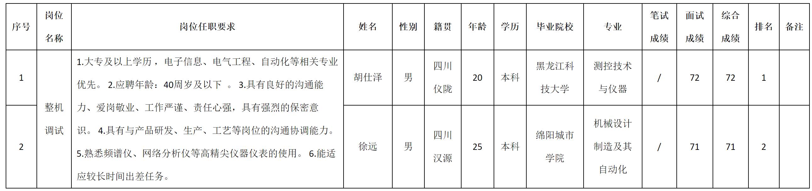 根據(jù)四川九洲防控科技有限責任公司發(fā)布的招聘公告及招聘相關規(guī)定,現(xiàn)將測試成績予以公示。