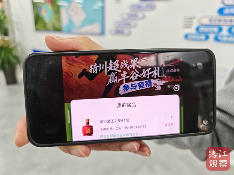 10月20日,記者獲悉,在“川超”阿壩VS綿陽的比賽競猜活動(dòng)中,市民馮軍在綿陽官方新聞客戶端涪江觀察抽中大獎(jiǎng)——2.5L裝“豐谷酒王”。他是川超聯(lián)賽綿陽隊(duì)的忠實(shí)粉絲。
