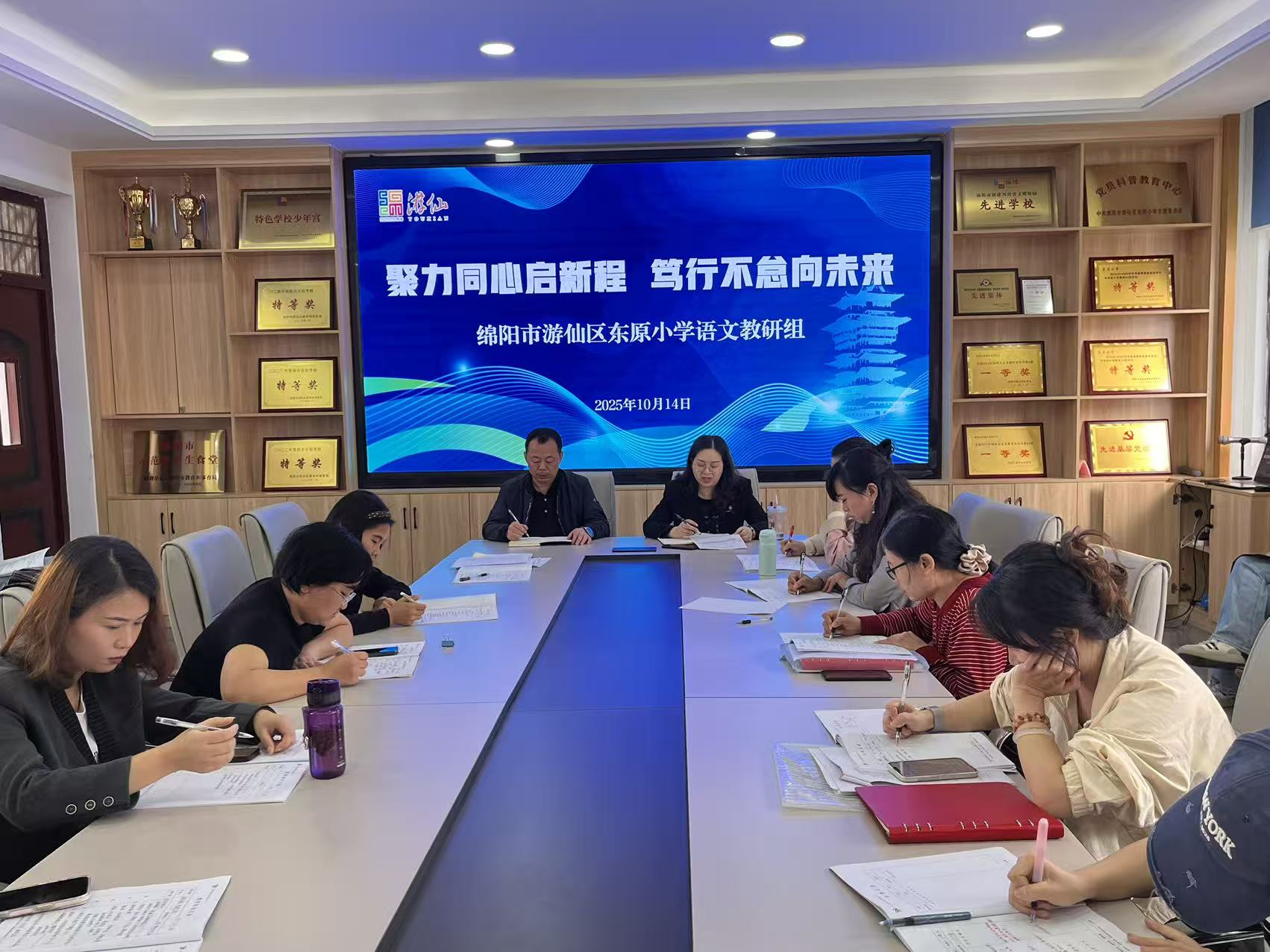 10月14日,游仙區(qū)東原小學在三樓會議室舉行了以“聚心同力啟新程,篤行不怠向未來”為主題的2025年秋語文教研活動暨學校創(chuàng)新工作室成立儀式。會議由語文教研組長張紅梅主持。