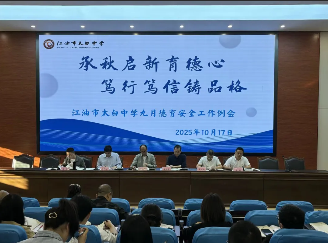 為了進(jìn)一步壓實德育責(zé)任、統(tǒng)籌安排后期德育與安全工作,10月17日,江油市太白中學(xué)召開了以“承秋啟新育德心,篤行篤信鑄品格”為主題的2025年秋德育安全專題會議。