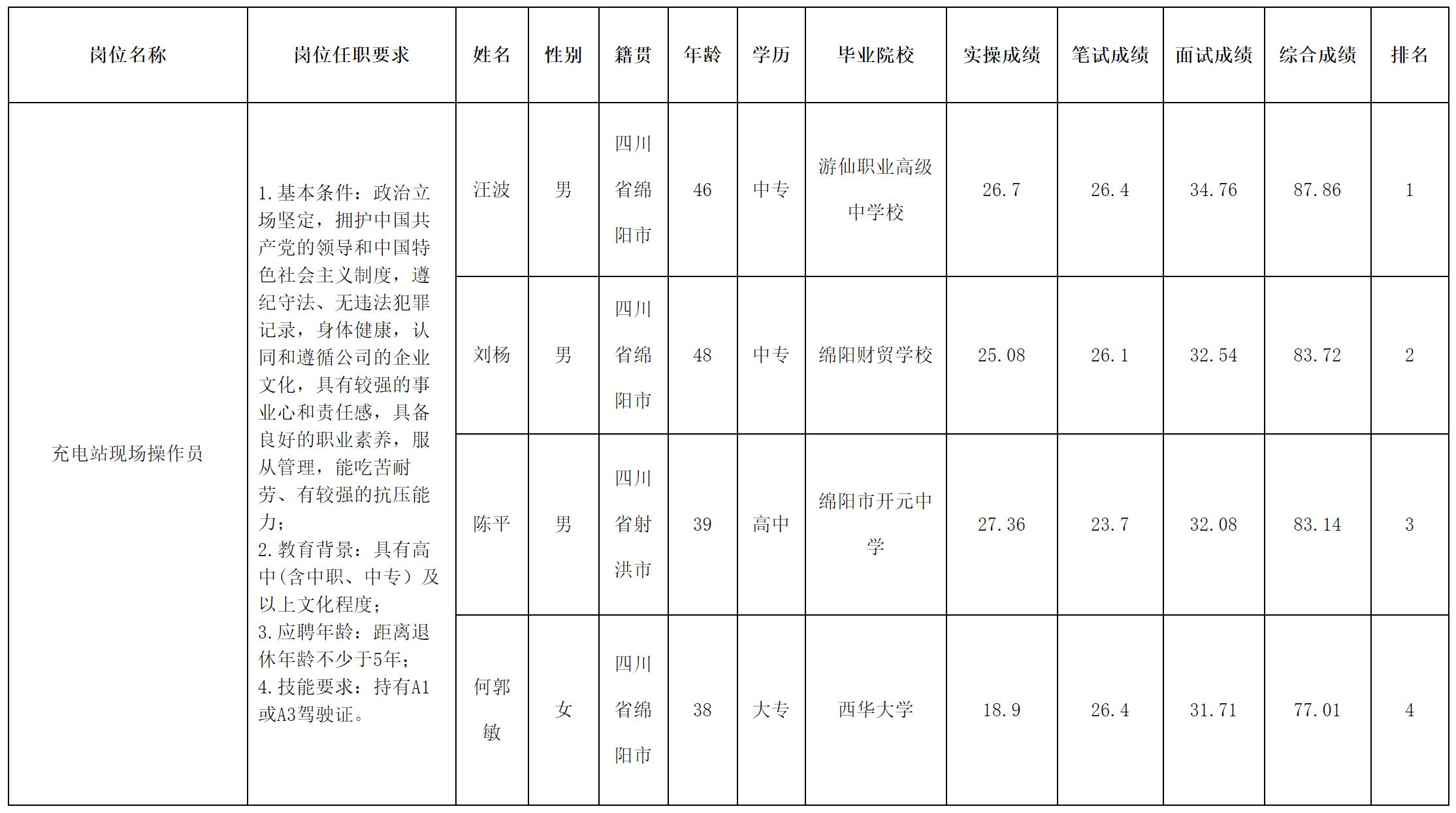 根據(jù)綿陽耀鴻交通職業(yè)培訓(xùn)有限責(zé)任公司發(fā)布的招聘公告及招聘相關(guān)規(guī)定,經(jīng)實操、筆試等程序,現(xiàn)將實操、筆試(面試)成績予以公示。