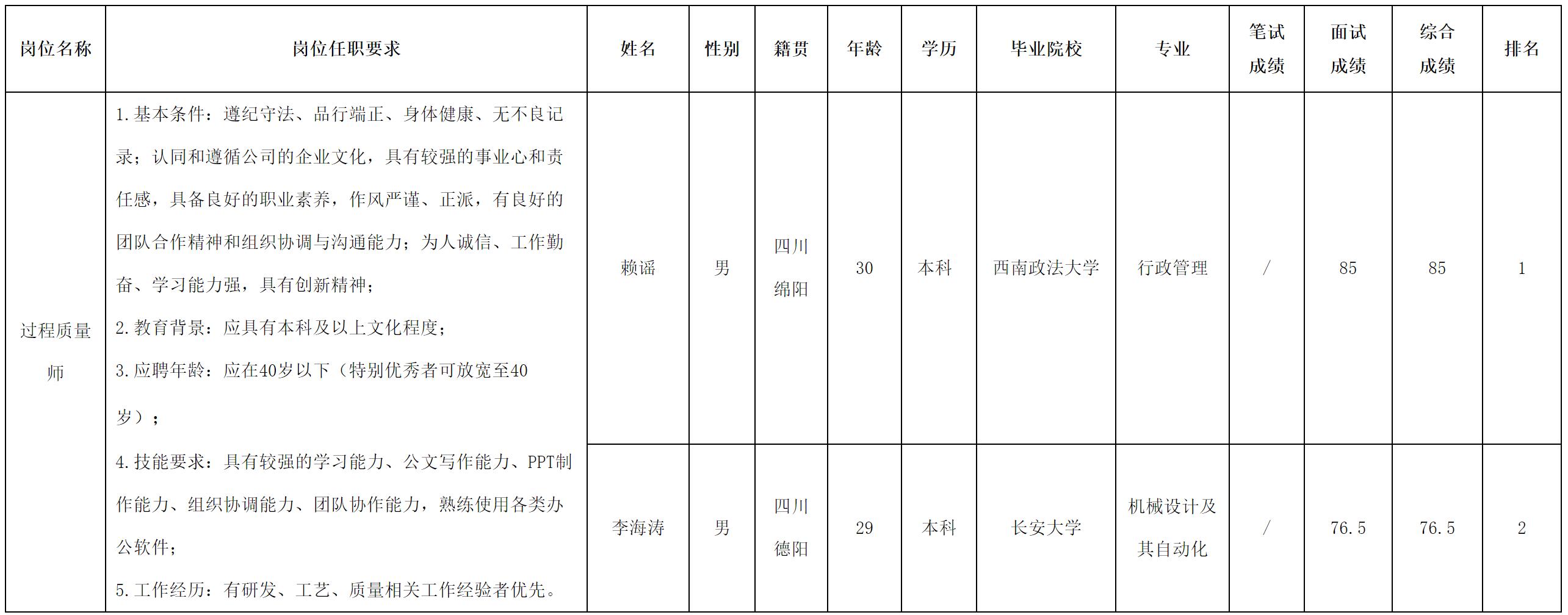 根據(jù)四川長(zhǎng)虹空調(diào)有限公司發(fā)布的招聘公告及招聘相關(guān)規(guī)定,經(jīng)面試等程序,現(xiàn)將面試成績(jī)予以公示。