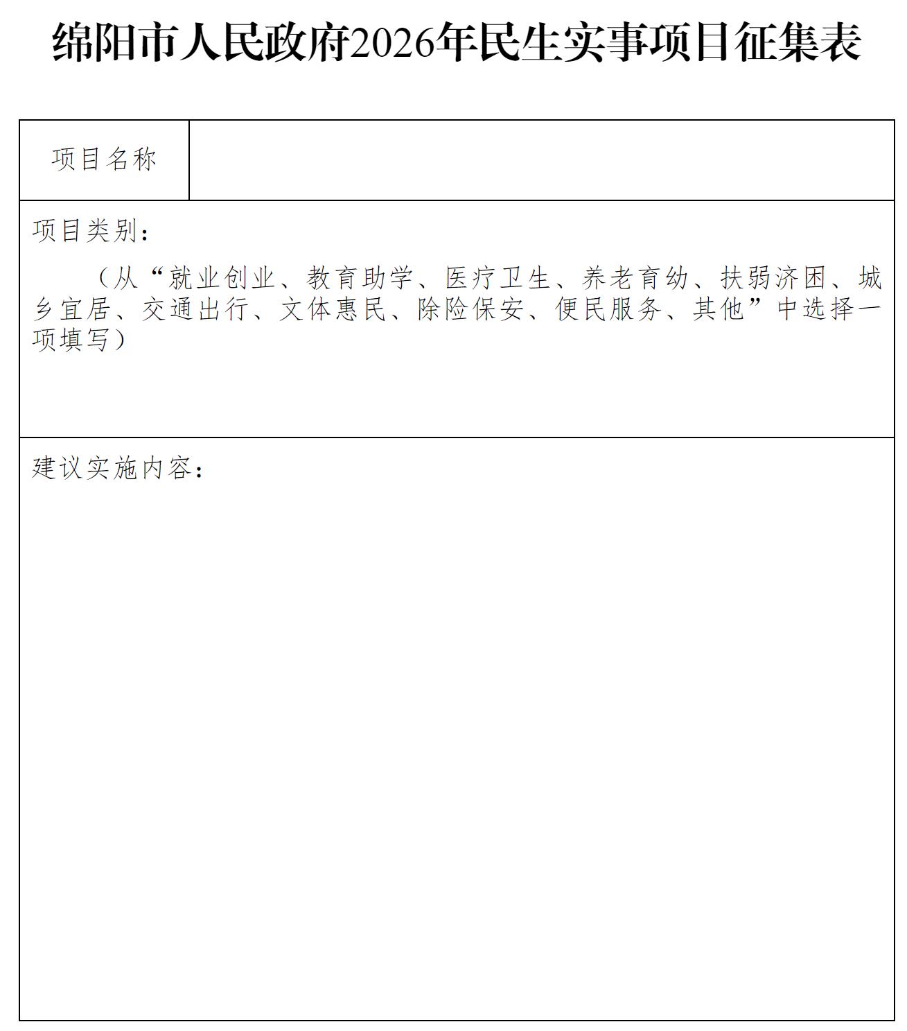 附件:綿陽市人民政府2026年民生實事項目征集表