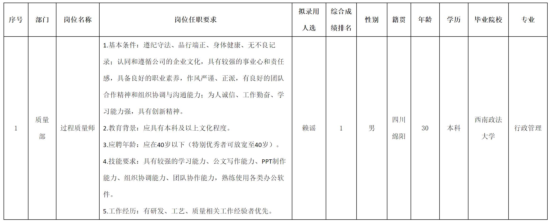根據(jù)四川長虹空調(diào)有限公司發(fā)布的招聘公告及招聘相關規(guī)定,經(jīng)面試,擬錄用賴謠到長虹空調(diào)工作,現(xiàn)予以公示,具體情況如下: