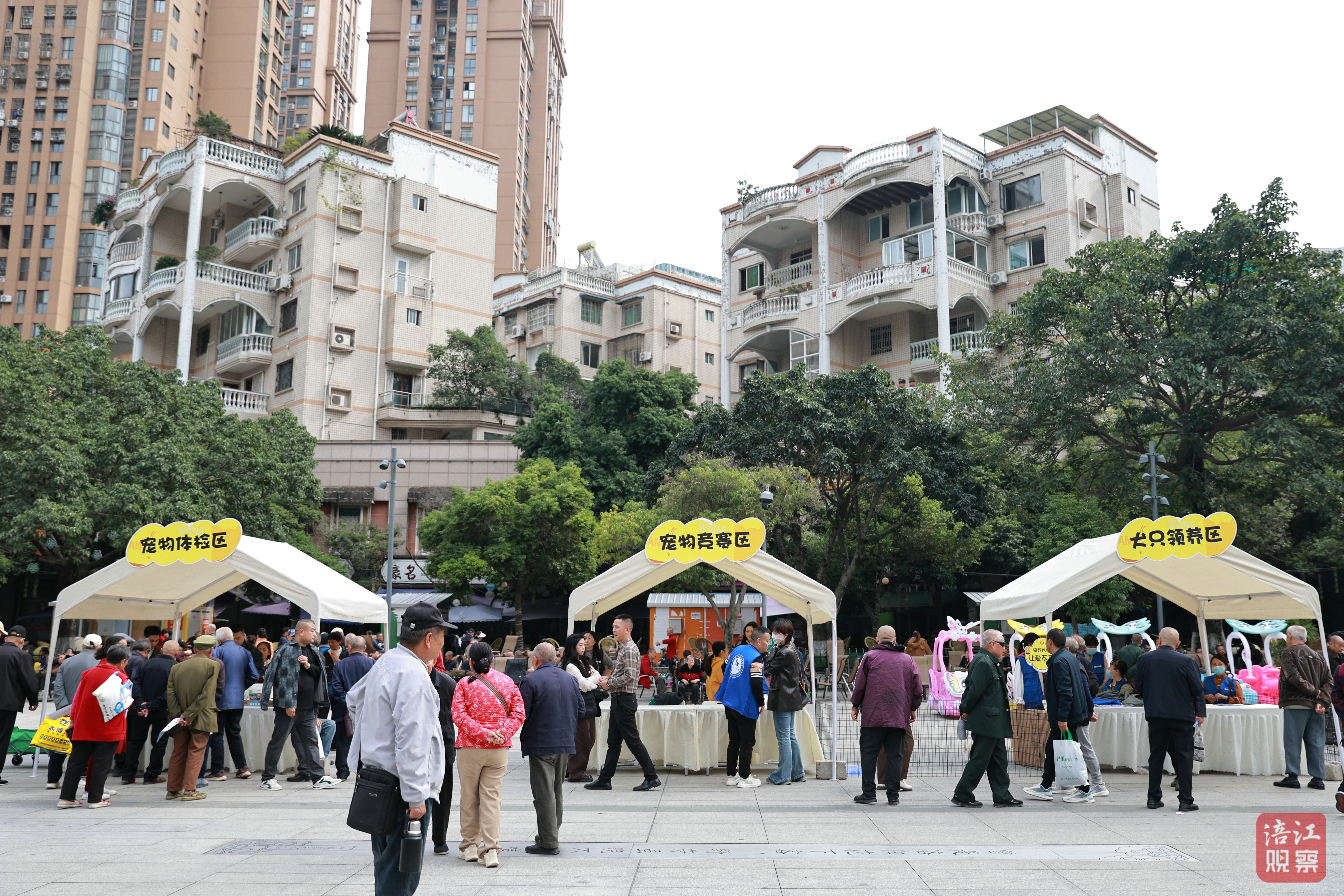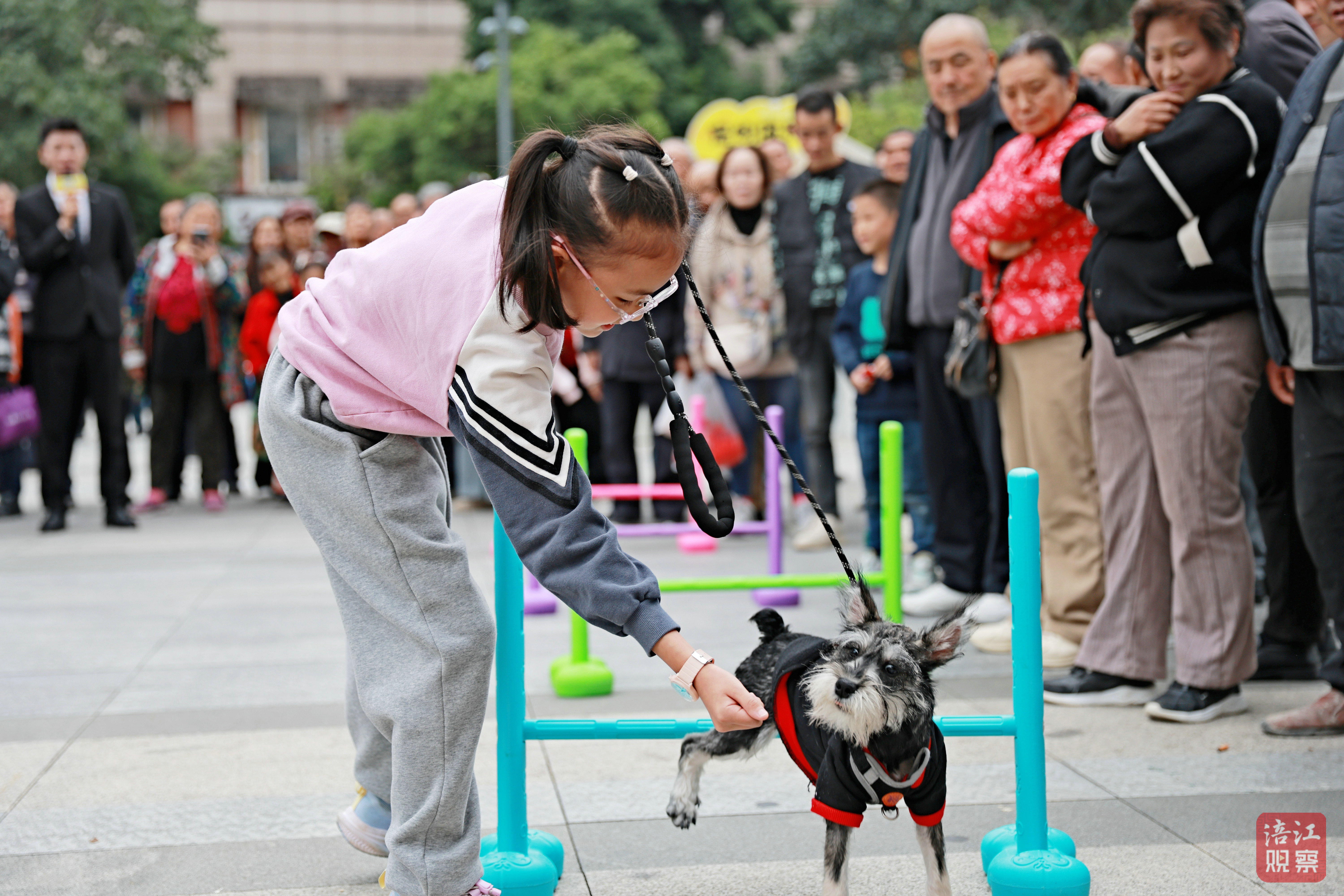鐵牛廣場(chǎng)兩側(cè)還設(shè)置了養(yǎng)犬宣傳辦證區(qū)、寵物體檢區(qū)、流浪犬領(lǐng)養(yǎng)區(qū)等多個(gè)區(qū)域,市民們通過(guò)問(wèn)答互動(dòng)或拍照打卡領(lǐng)取寵物零食、環(huán)保袋等禮品,萌寵比賽中,狗狗在主人引導(dǎo)下穿越障礙,場(chǎng)面歡樂(lè)。