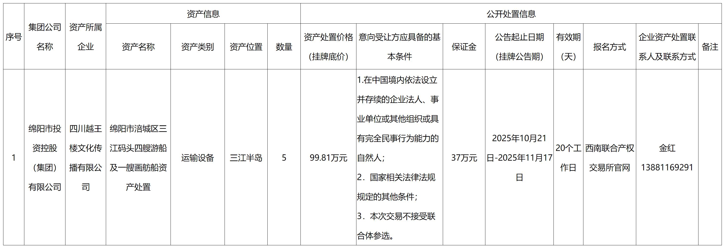 四川越王樓文化傳播有限公司資產(chǎn)處置公告
