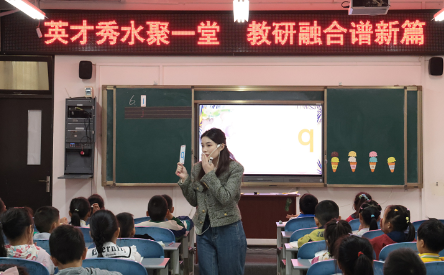 隨后,活動分語文、數(shù)學兩個專場同步進行。在語文專場,英才小學的劉老師展示了一年級拼音教學《jqx》。她巧妙運用多種教學手段,將抽象的拼音知識變得生動有趣,充分體現(xiàn)了以學生為中心的教學理念。數(shù)學專場中,陳老師執(zhí)教一年級數(shù)學《6、7的加法解決問題》。她通過情境創(chuàng)設與問題引導,重在培養(yǎng)學生的邏輯推理能力,展示了扎實的教學功底與課堂組織能力。