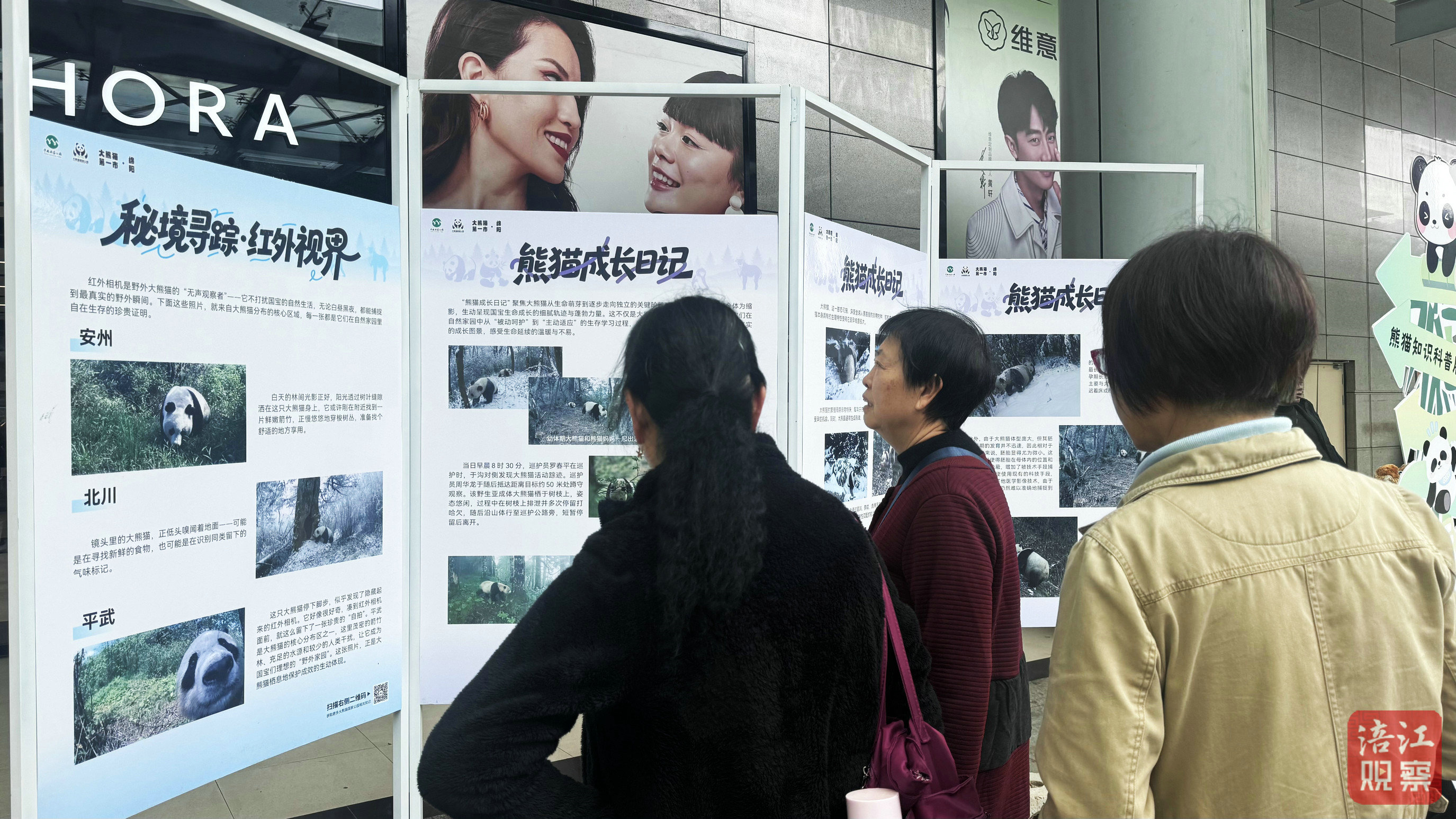 在熊貓知識科普展示區(qū),大熊貓國家公園的四季美景如同一幅幅壯麗的生態(tài)畫卷徐徐展開。紅外相機(jī)捕捉的“秘境尋蹤”,瞬間揭開了野生大熊貓生活的神秘面紗;而從“熊貓成長日記”里,市民們讀懂了國寶從幼崽到成年的生命奇跡。